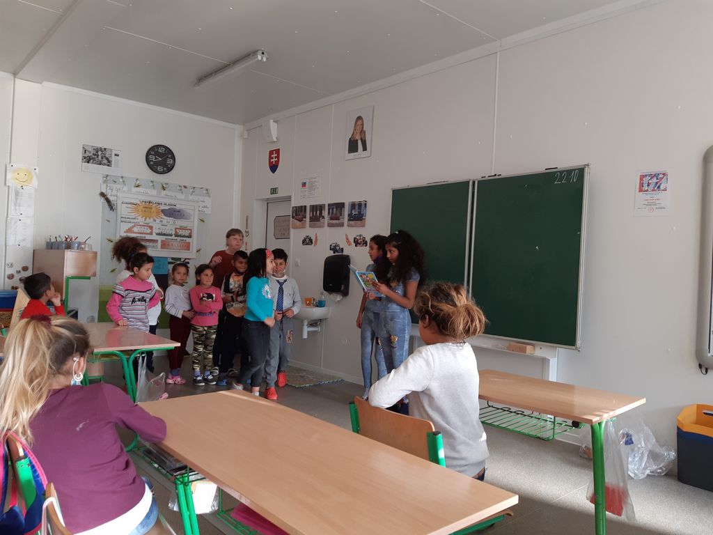 Zahrať rozprávku bez slov, len pomocou pantomímy, nie je vôbec jednoduché. Naši žiaci to ale zvládli bravúrne. Občas s malým podstrčením pani učiteľky Grendelovej, autorky aktivity, či nenápadnými rekvizitami, ale naozaj perfektne. Červená Čiapočka, Tri oriešky pre Popolušku, Ťahal dedko repku, Tri prasiatka a Tom a Jerry ožili v každej triede. Úlohou žiakov bolo uhádnuť, ktorú rozprávku ich spolužiaci predvádzajú.