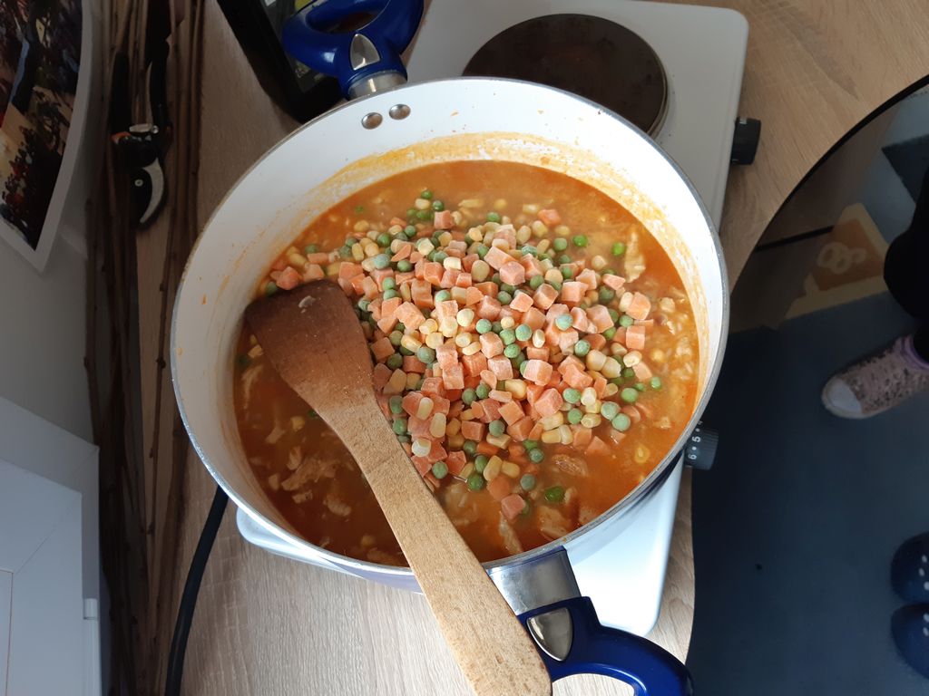 Recept na bublaninu mám už niekoľko rokov, odskúšaný možno aj stokrát. Lacný, jednoduchý, úplne obyčajný. Bublanina sa vydarila, stihli ju upiecť aj zjesť ešte pred obedom. Rizoto, tak to už bol iný level. To sme ostali po obede iba baby a ja. Malo to byť rizoto so zeleninou, syrom a kuracím mäskom. Tak som si povedala, že to skúsim vyšperkovať na maximum. A zasvätila som ich do „varenia pre oči, srdce aj žalúdok.“